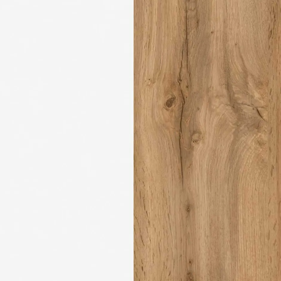 - Korpus in Holzoptik Wildeiche melaminbeschichtet, Front tiefgezogen mattweiß foliert
