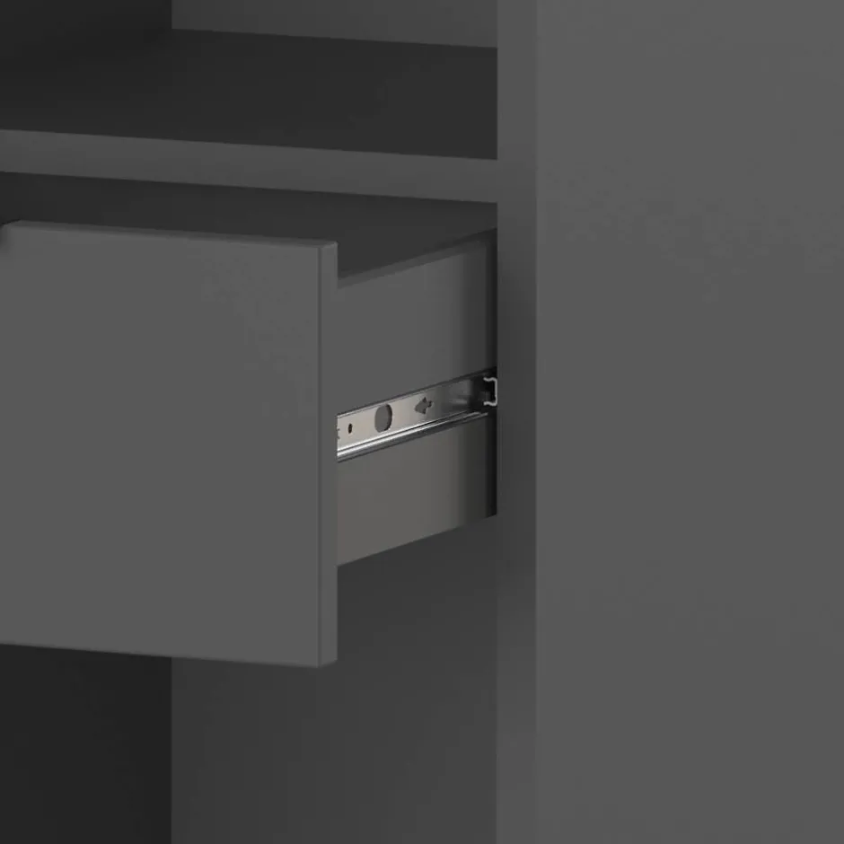 - Mittig eine Schublade mit Metallauszug und Soft Close Funktion (Selbsteinzug), belastbar bis max. 10 kg