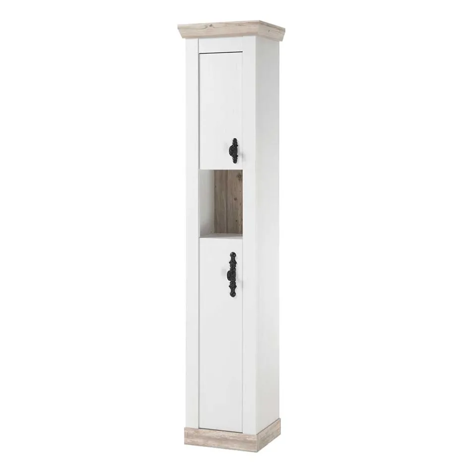 - Schicker Bad Hochschrank in Weiß und Pinienfarben