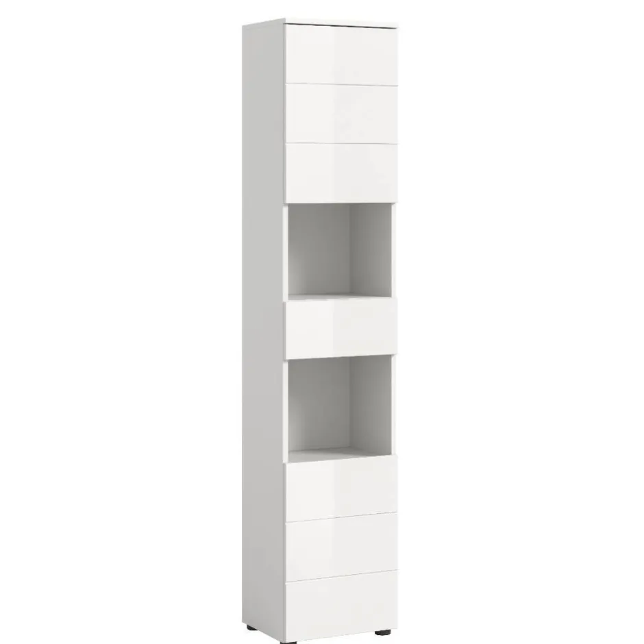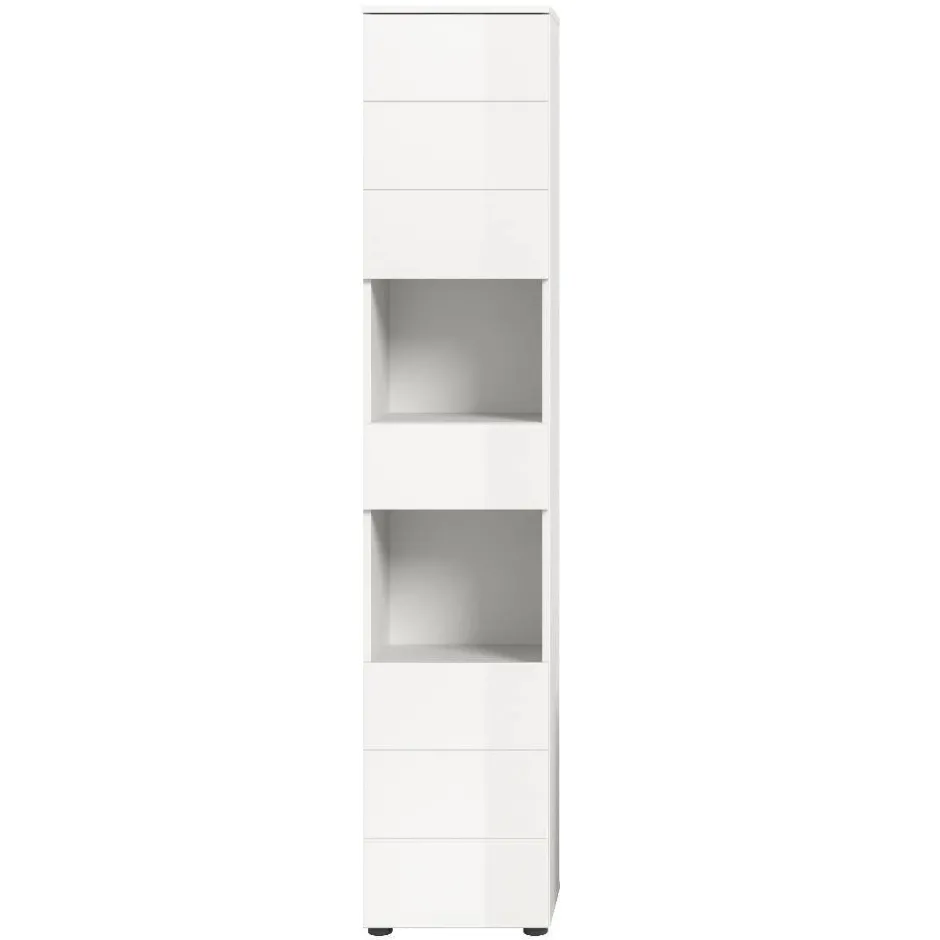 - Hinter jeder Tür ein verstellbarer Einlegeboden, dazu zwei offene Fächer