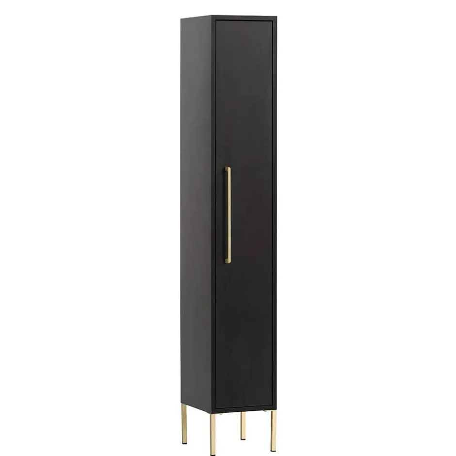- Schlanker Bad Hochschrank in Schwarz und Goldfarben