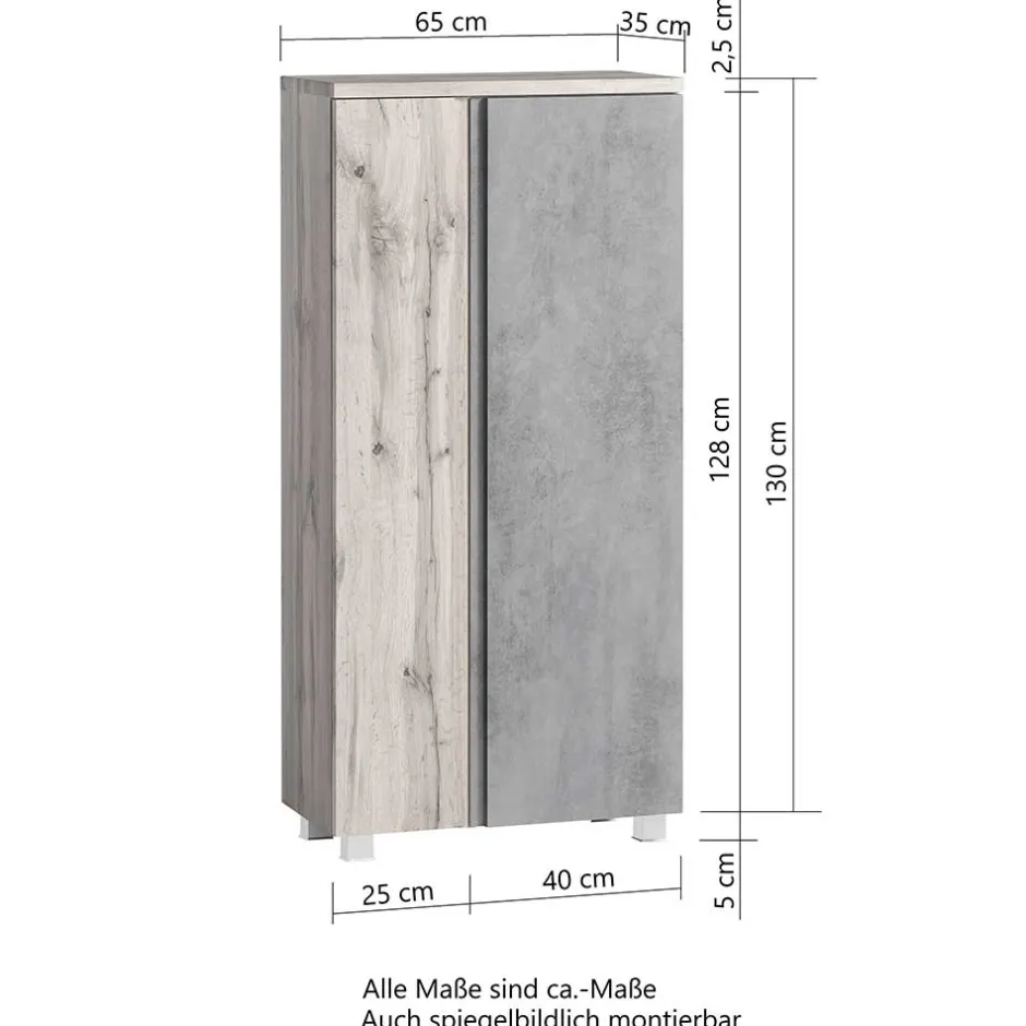 - 65 cm Breit, 135 cm Hoch, 35 cm Tief