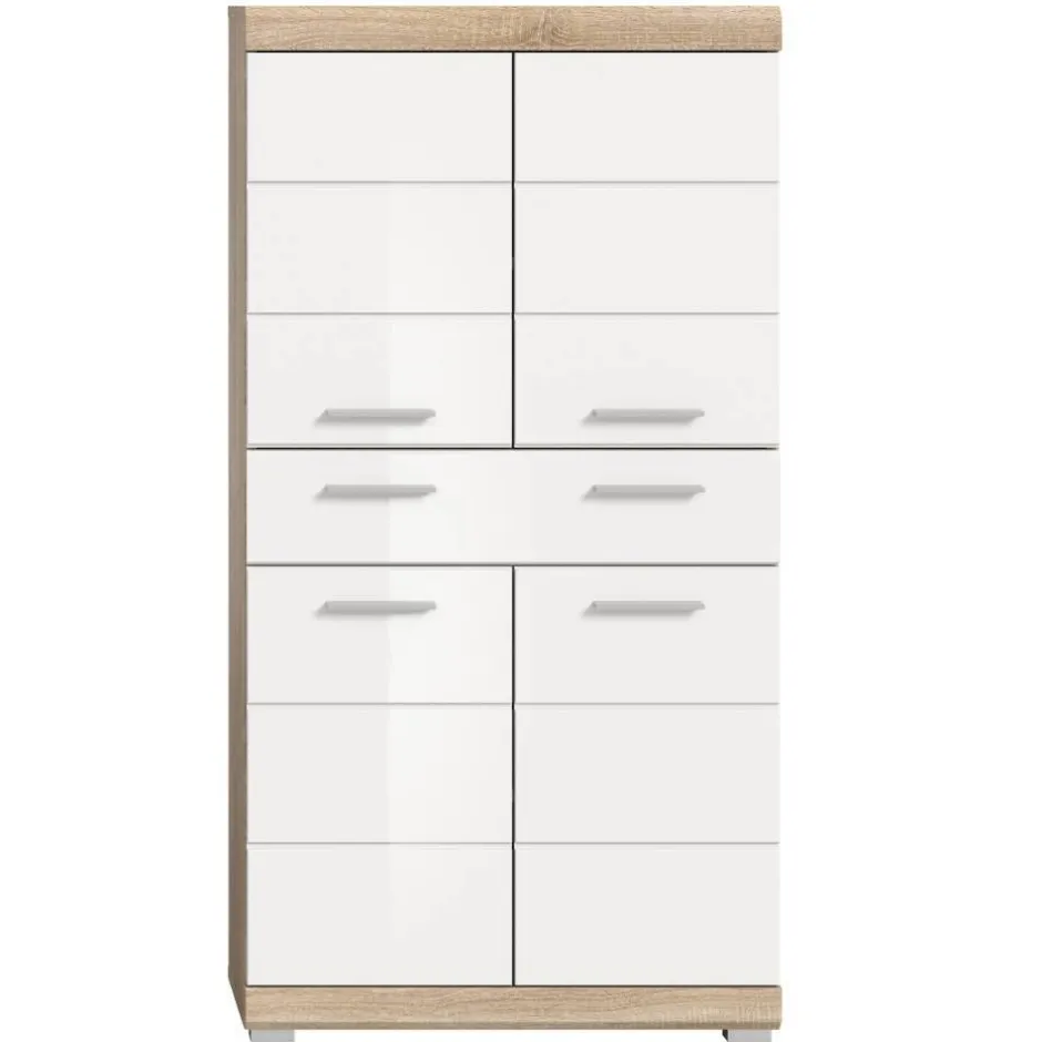 - Klasse Badmidischrank in Weiß und Sonoma Eiche