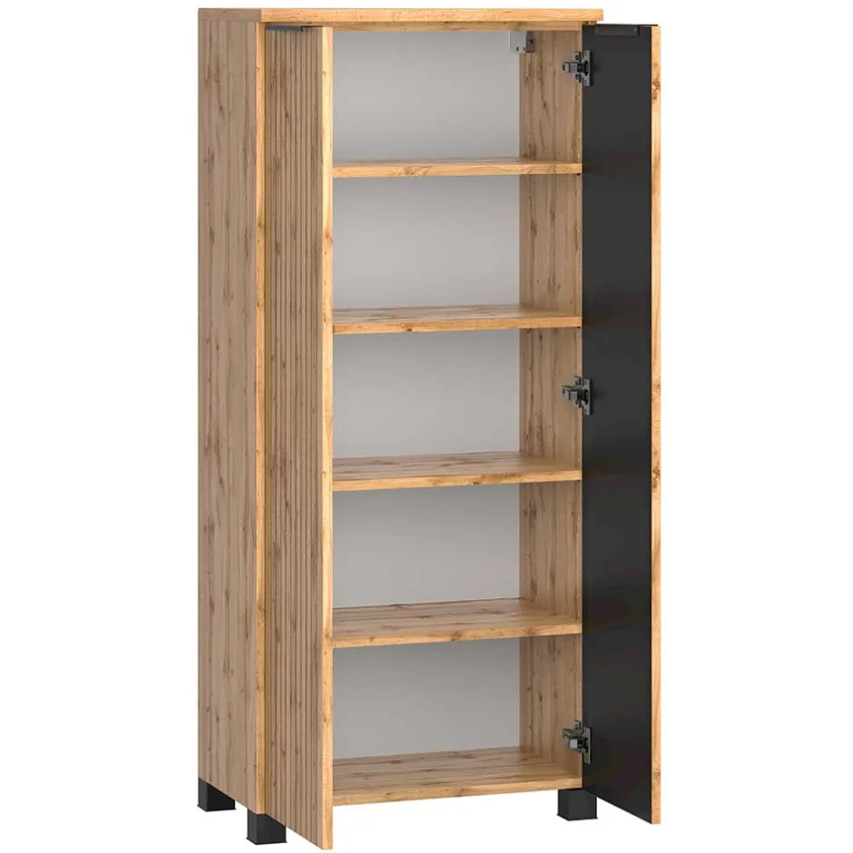 - Praktischer Bad Midischrank in Wildeichefarben und Schwarz