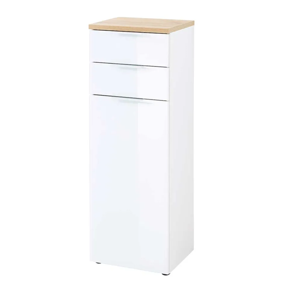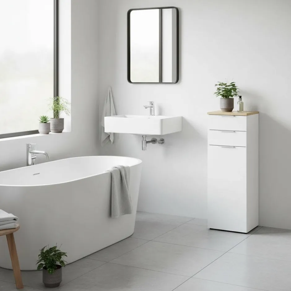 - Elegante Bad Kommode in Weiß und Eichefarben