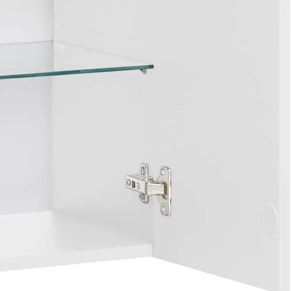 - Oberflächen in Weiß und Holzoptik Eiche melaminbeschichtet, Front glänzend