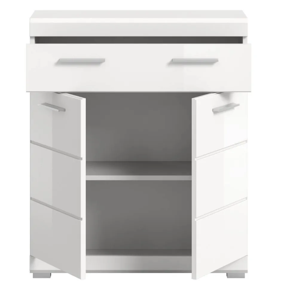 - Oben eine Schublade mit Metallauszug (Vollauszug), bis max. 2 kg belastbar