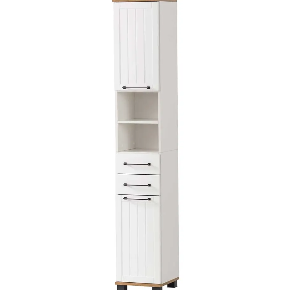 - Klasse Bad Hochschrank in Weiß und Eichefarben