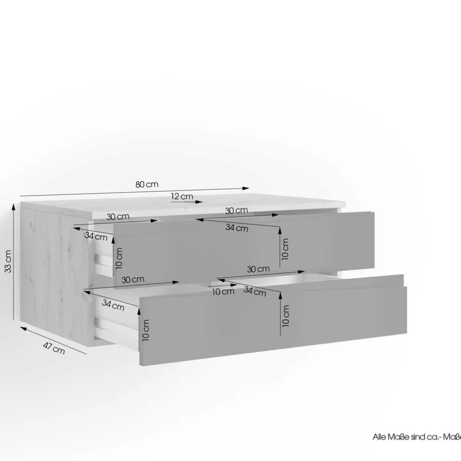 - Innenmaße Schubladen (BxHxT): ca. 29,8×9,7×33,7 cm mit Aussparung