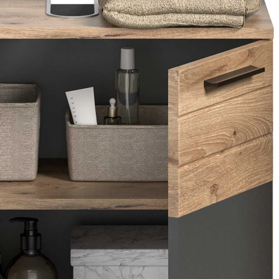 - Top Waschbeckenunterschrank in Wildeichefarben und Grau