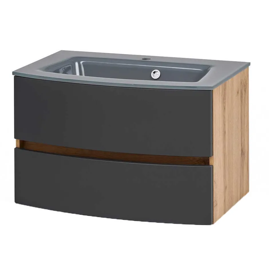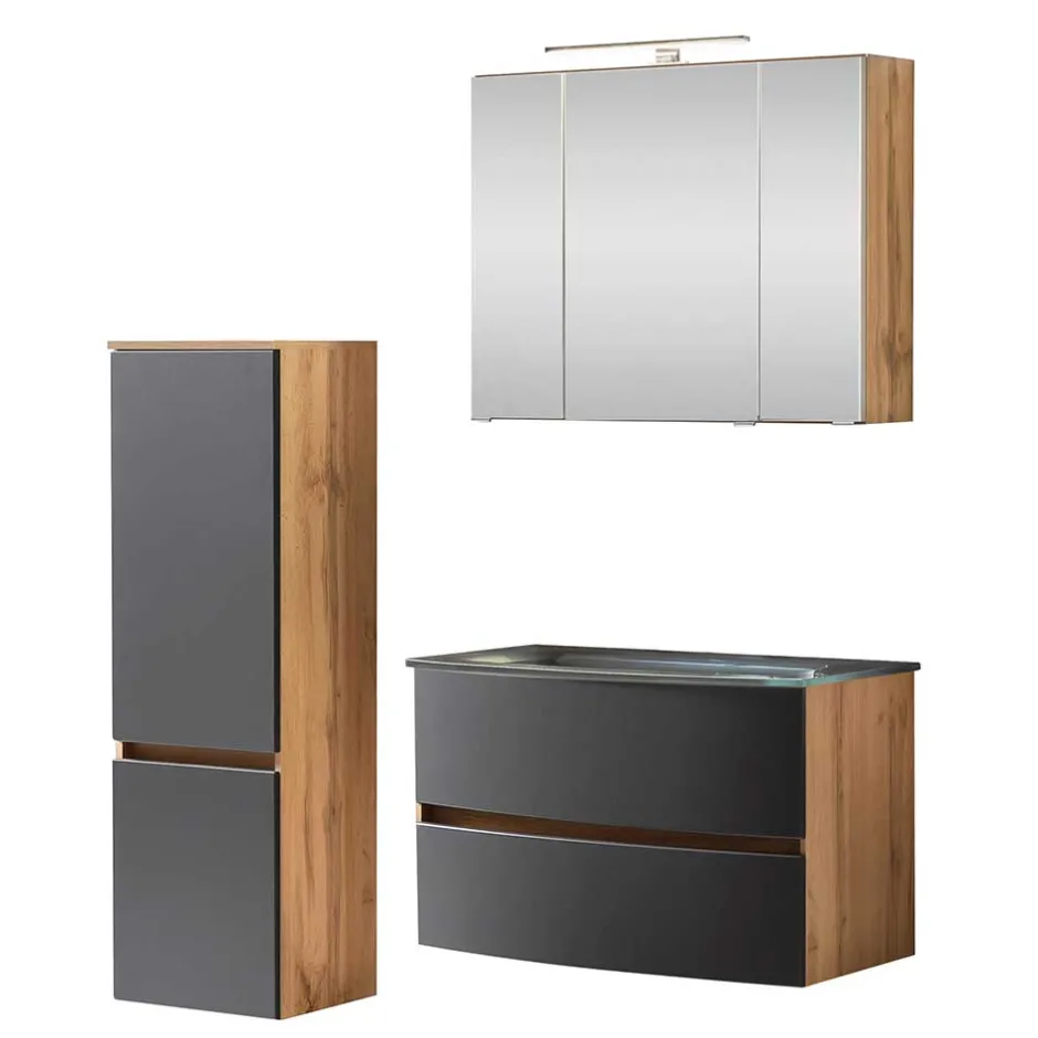 - Trendstarkes Badmöbel Set in Grau und Wildeichefarben