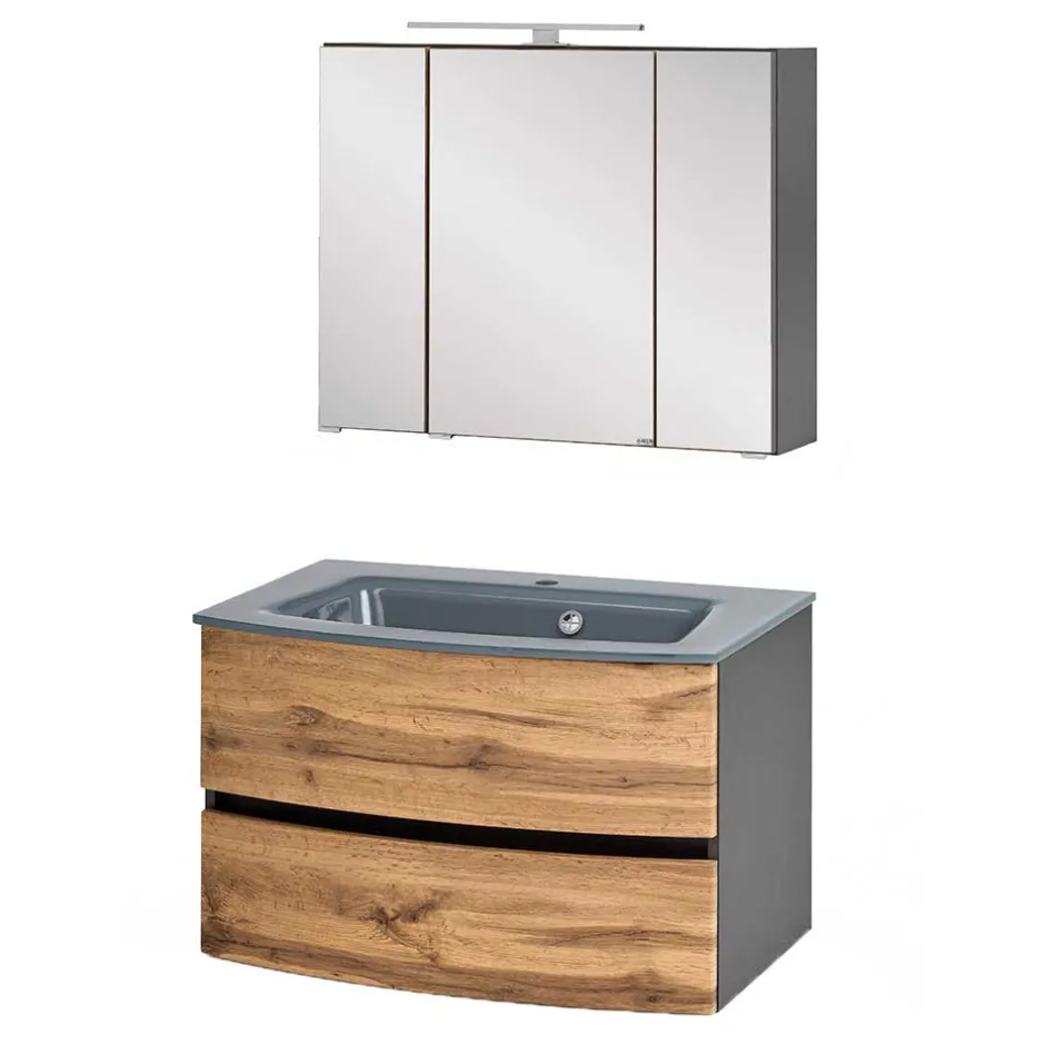 - Perfekte Badmöbel Kombination in Wildeichefarben und Dunkelgrau