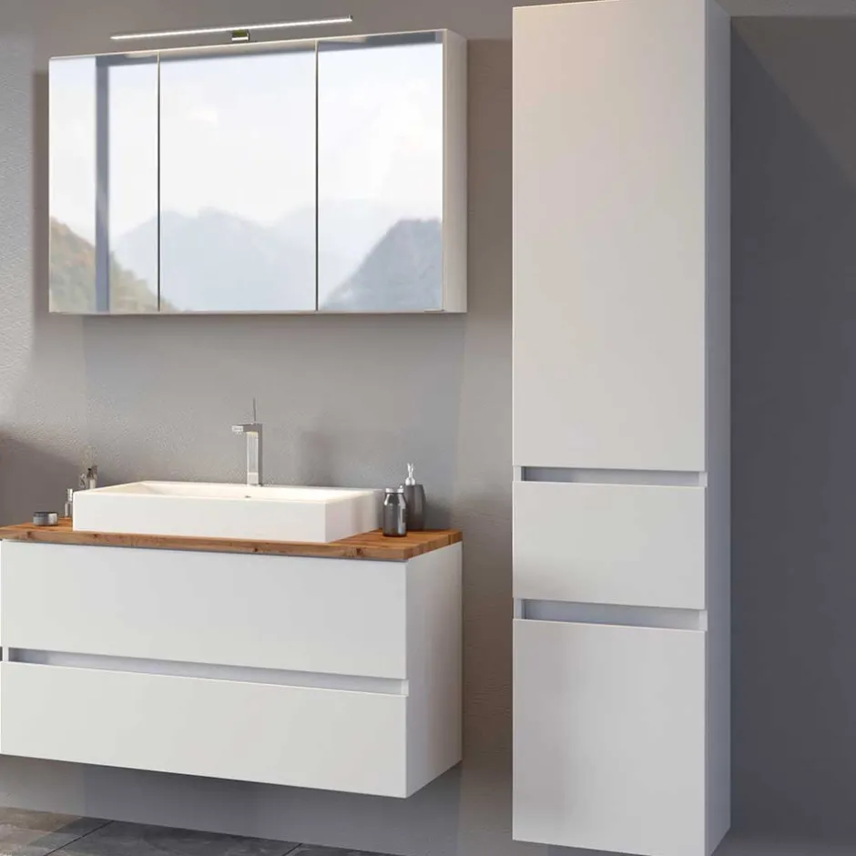 - Exzellentes Badezimmer Set in Weiß und Wildeichefarben