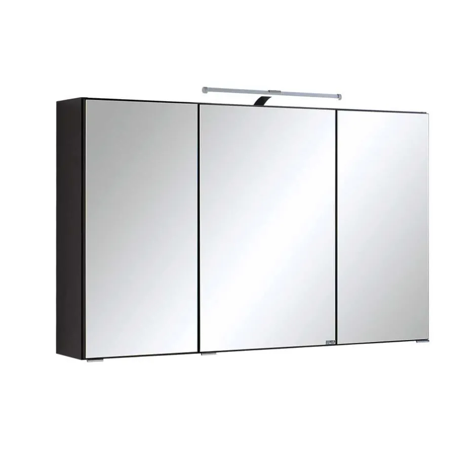 - Das Set besteht aus einem Seitenschrank, einem Spiegelschrank, einem Waschtisch, einem Hängeschrank und einem Unterschrank