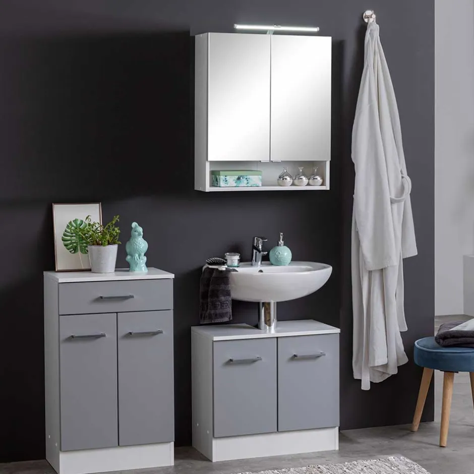 - Schlichtes Badmöbel Arrangement in Hellgrau und Weiß