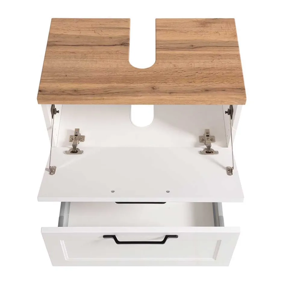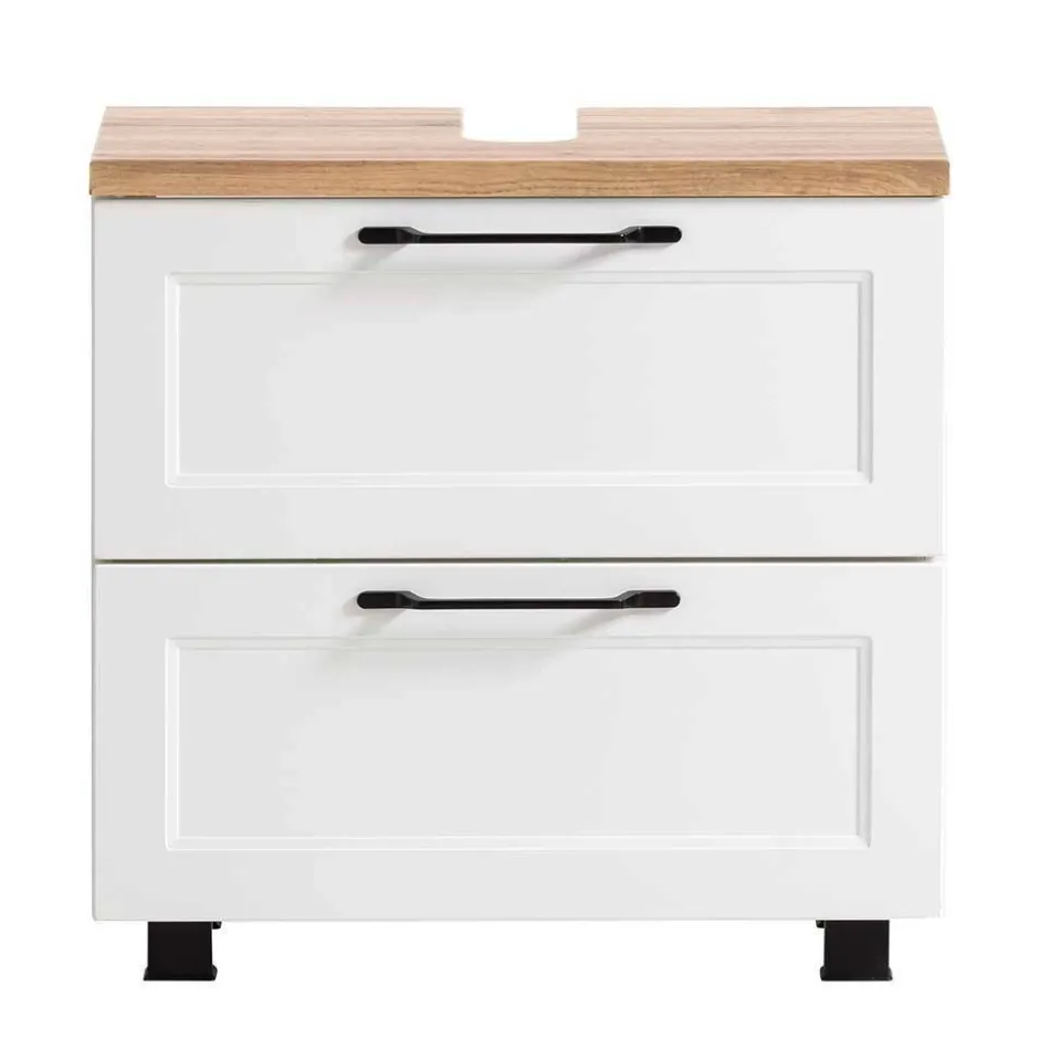 - Zweckmäßige Badmöbel in Weiß und Wildeichefarben