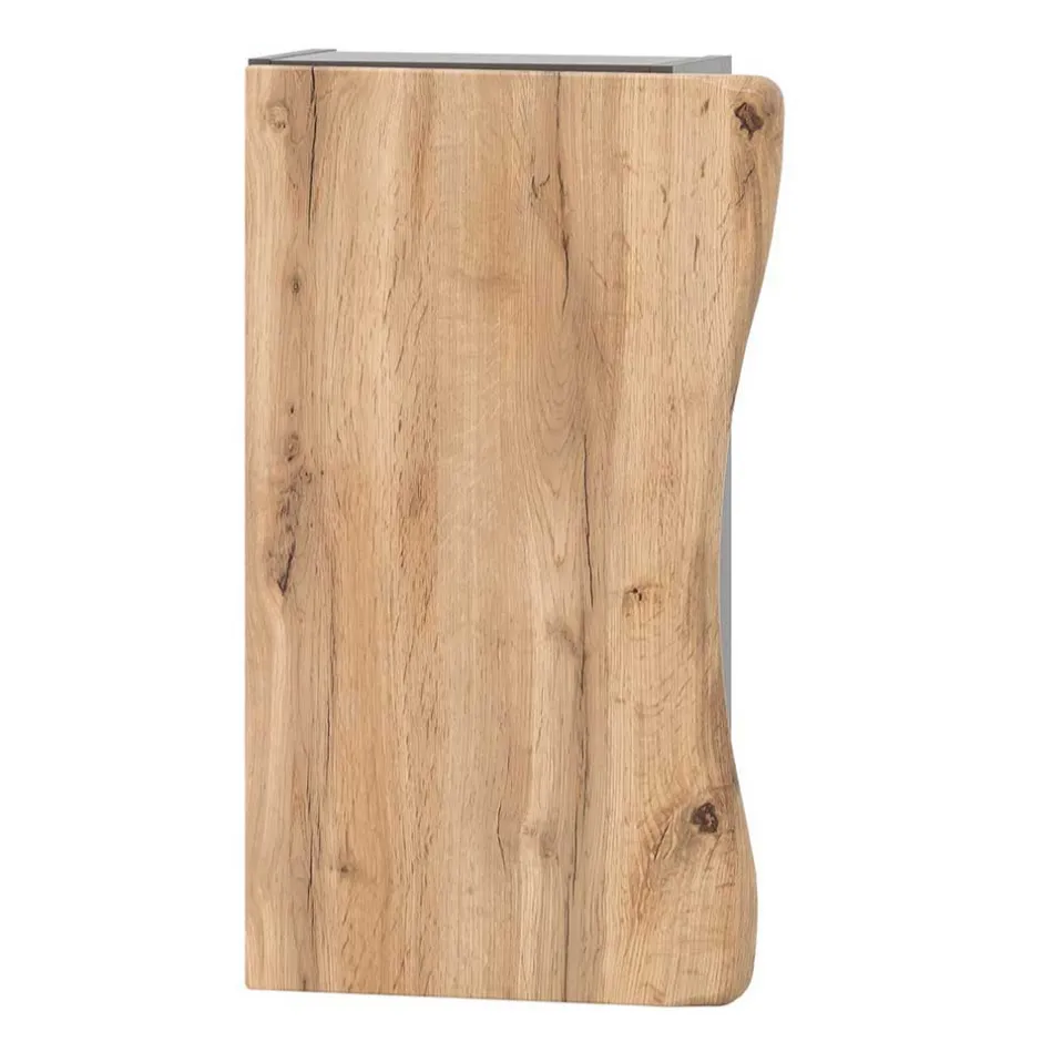 - Oberflächen in Holzoptik Wildeiche foliert, Kanten tiefgezogen (Front) und melaminbeschichtet (Korpus), Touchwood, Innendekor weiß