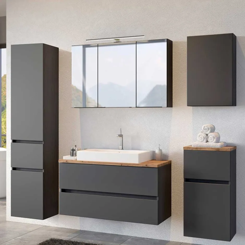 - Grandioses Badezimmer Set in Dunkelgrau und Wildeichefarben