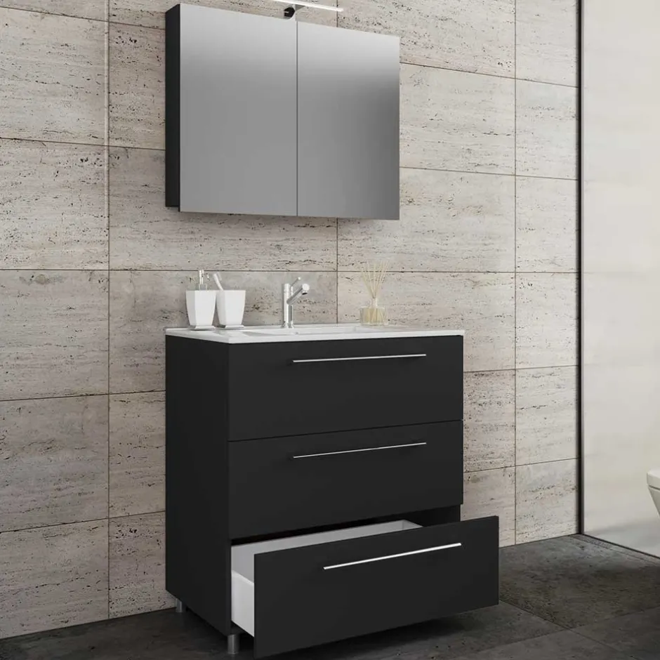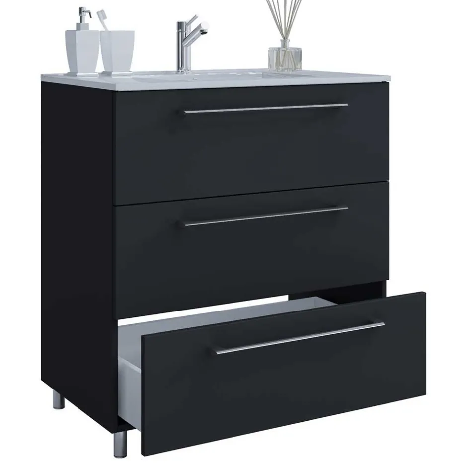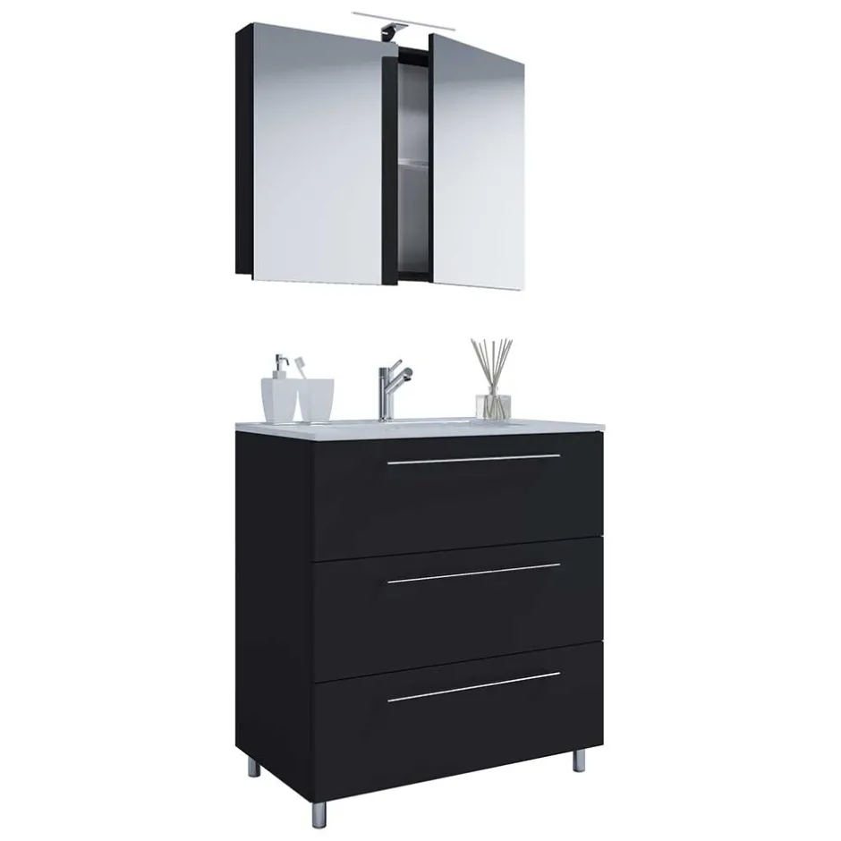 - Ansprechende Badmöbel in Schwarz und Weiß