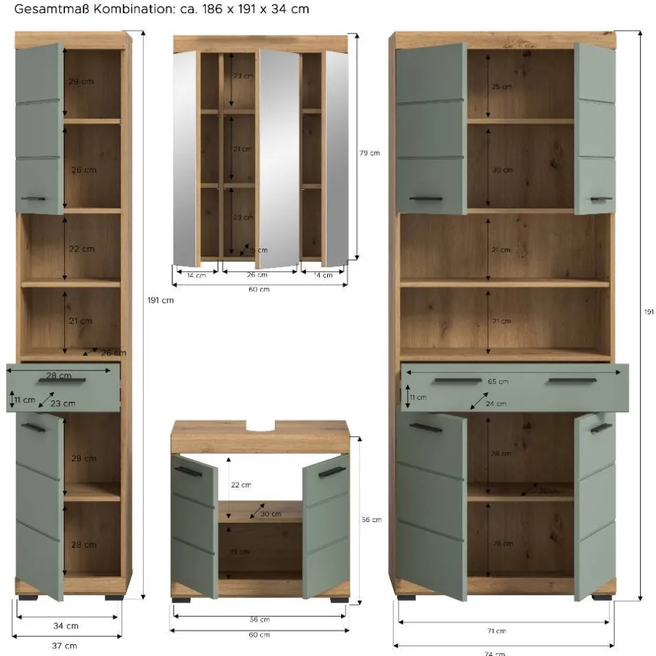 - Wohnliche Badmöbel in Salbei und Wildeichefarben