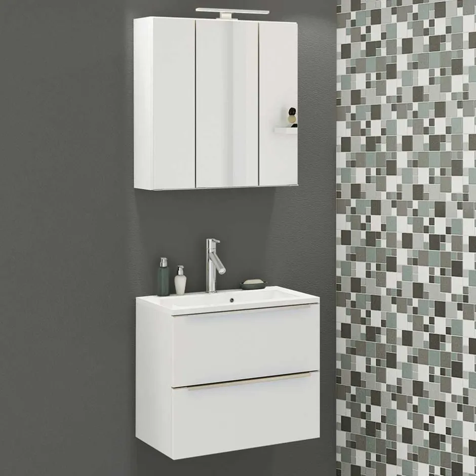 - Inklusive sparsamer LED Beleuchtung am Spiegelschrank