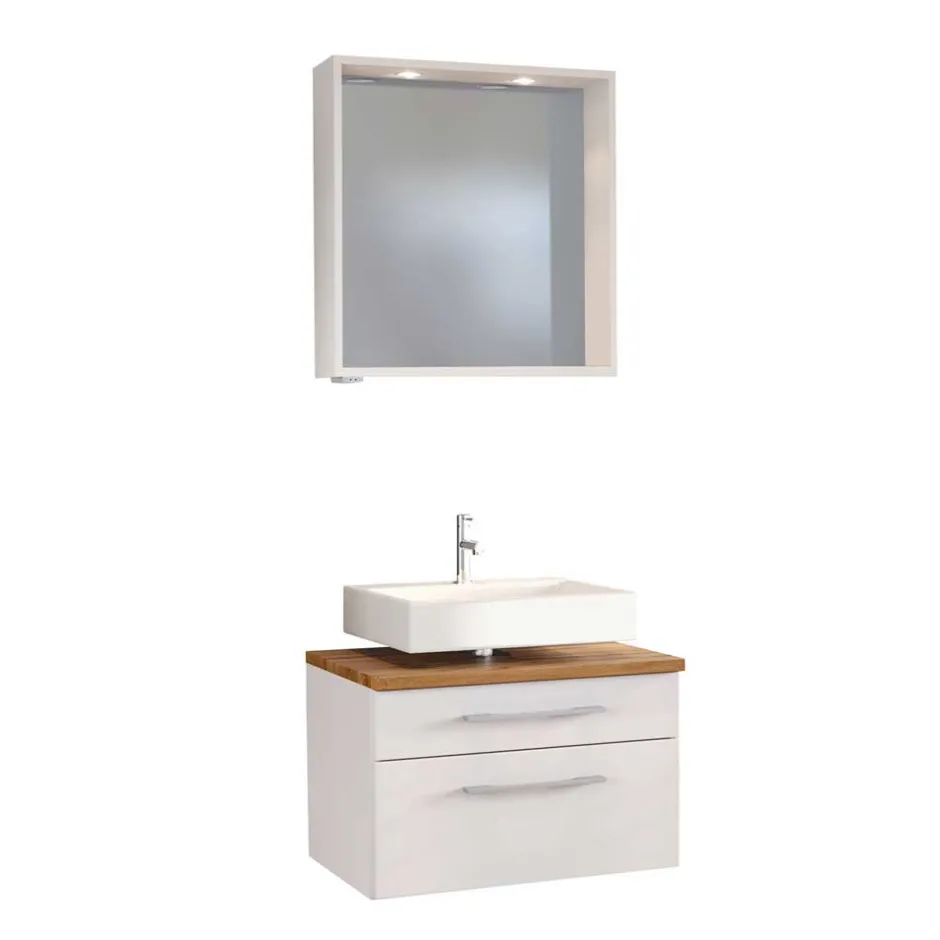 - Geschmackvolles Badmöbel Set in Weiß und Wildeichefarben