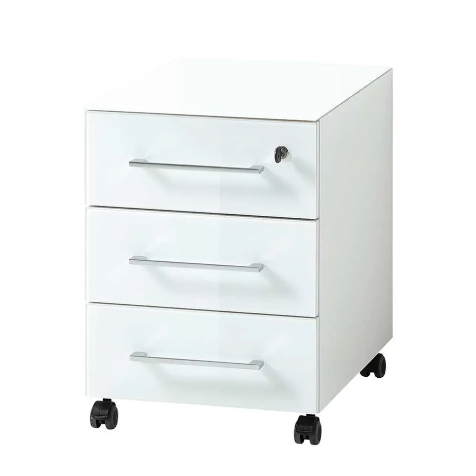 - Melaminharzbeschichtete Oberfläche, Türen, Schreibtischplatte und Oberplatten zusätzlich mit Sicherheitsglas beschichtet