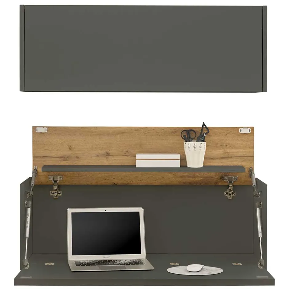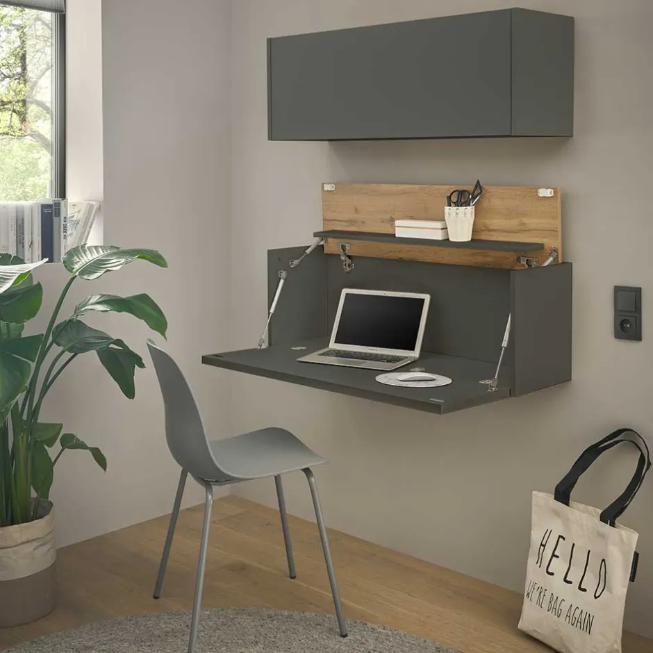 - Platzsparendes Home Office Set in Anthrazit und Wildeichefarben