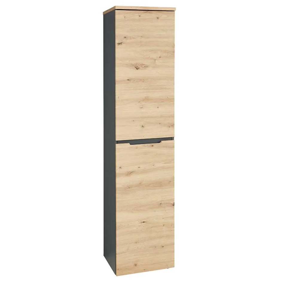 - Pflegeleicht folierte Oberflächen in Holzoptik Wildeiche und Dunkelgrau, Front mit tiefgezogenen Kanten