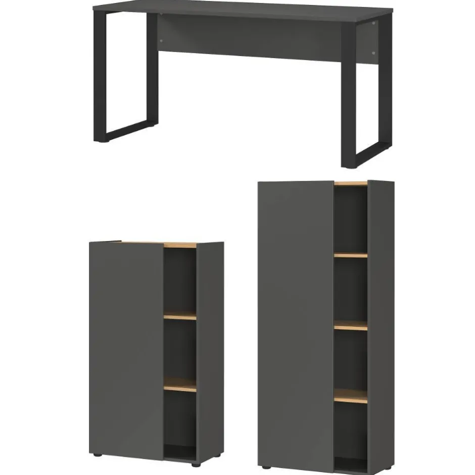 - Solide Arbeitszimmermöbel in Dunkelgrau und Wildeichefarben