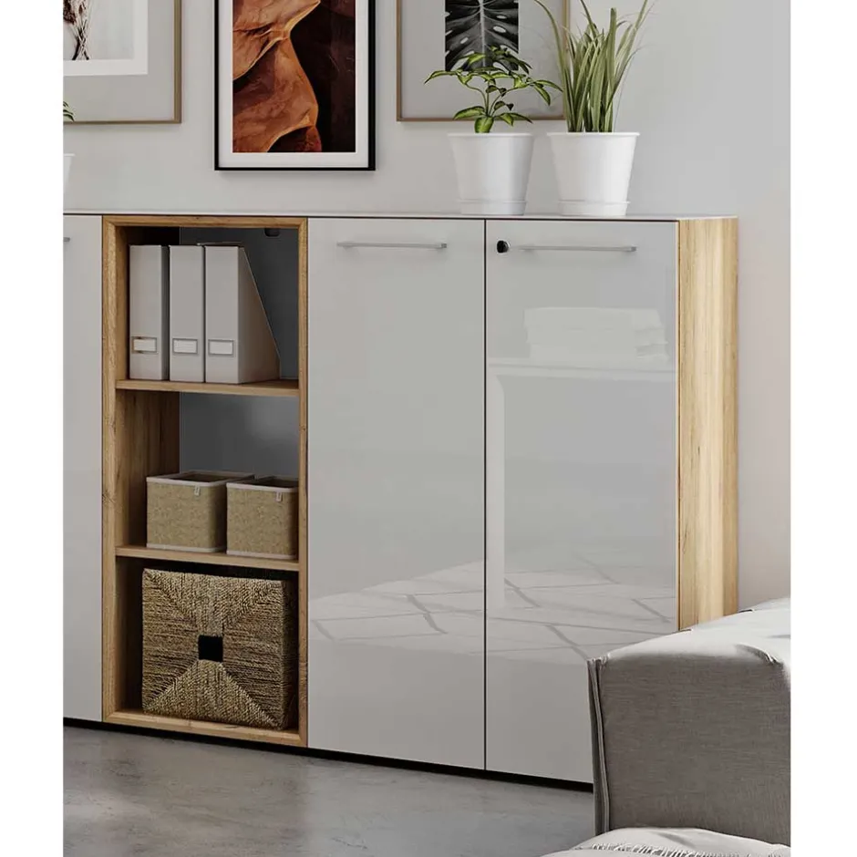 - Funktionale Büro Schrank Kombination in Weiß und Wildeichefarben