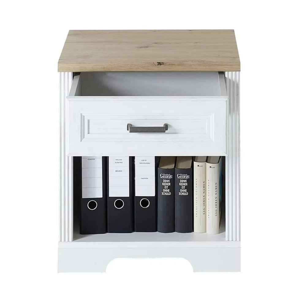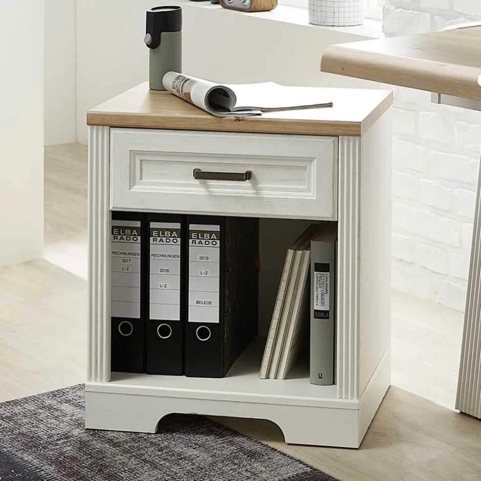 - Geräumiger Rollcontainer in Pinie Weiß und Eichefarben