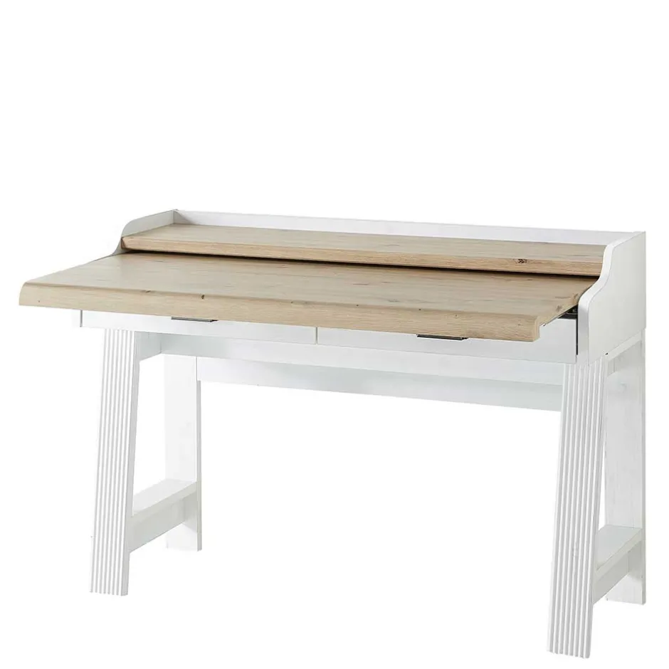 - Funktionaler Schreibtisch in Pinie Weiß und Eichefarben