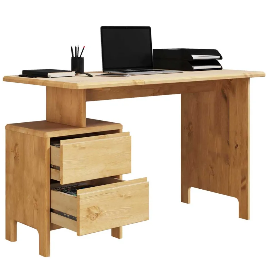 - Modern und zeitlos präsentiert sich der Schreibtisch in Kieferfarben