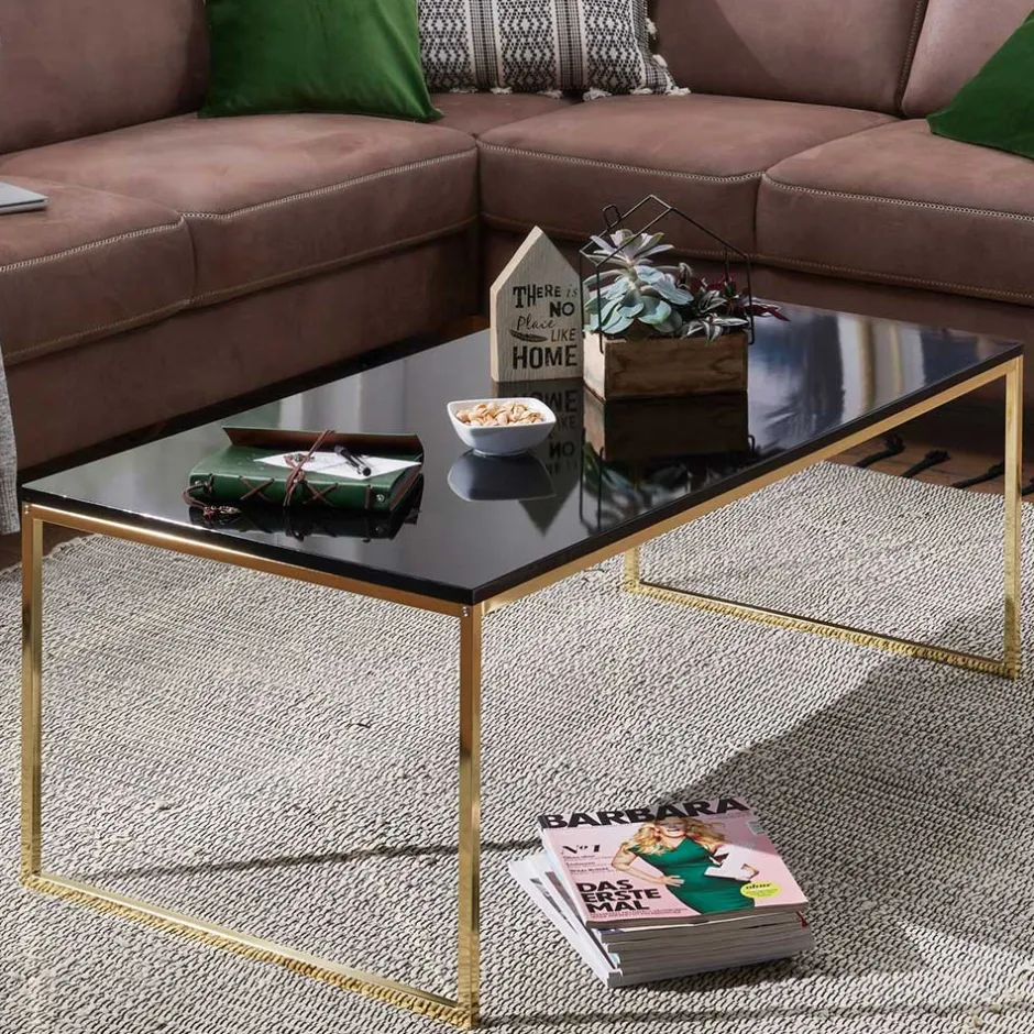 - Eleganter Couchtisch in Goldfarben und Hochglanz Schwarz
