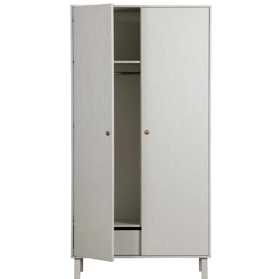- Innen ein Hutboden, eine Kleiderstange und zwei Konstruktionsböden