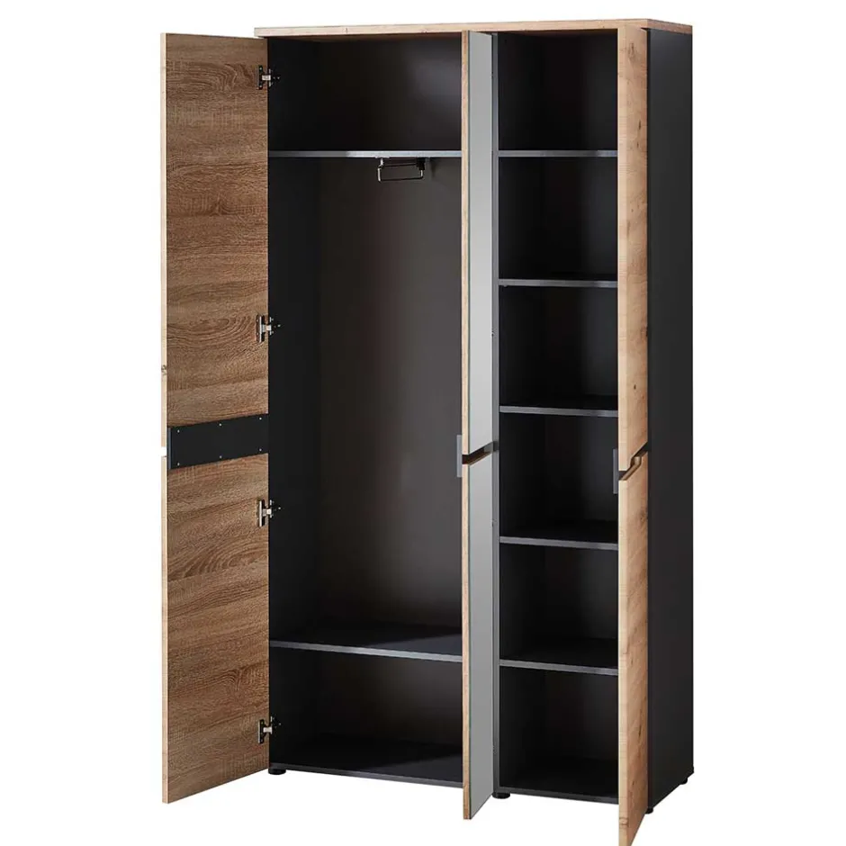 - Großzügiger Garderobenschrank in Wildeichefarben und Dunkelgrau