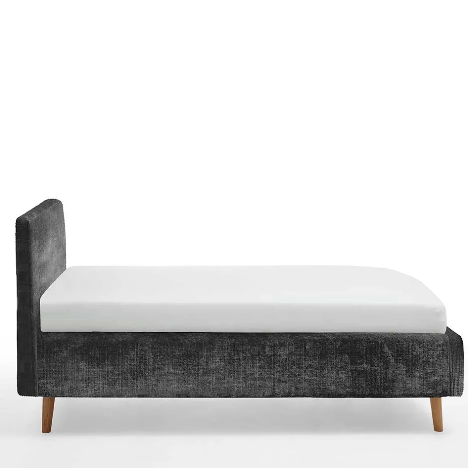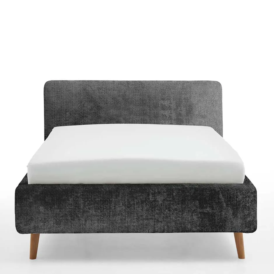 - Trendstarkes Polsterbett in Anthrazit und Eichefarben