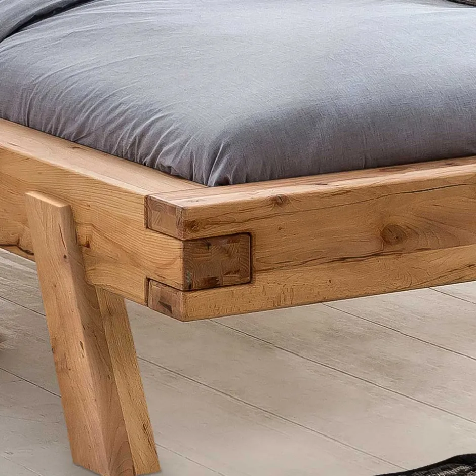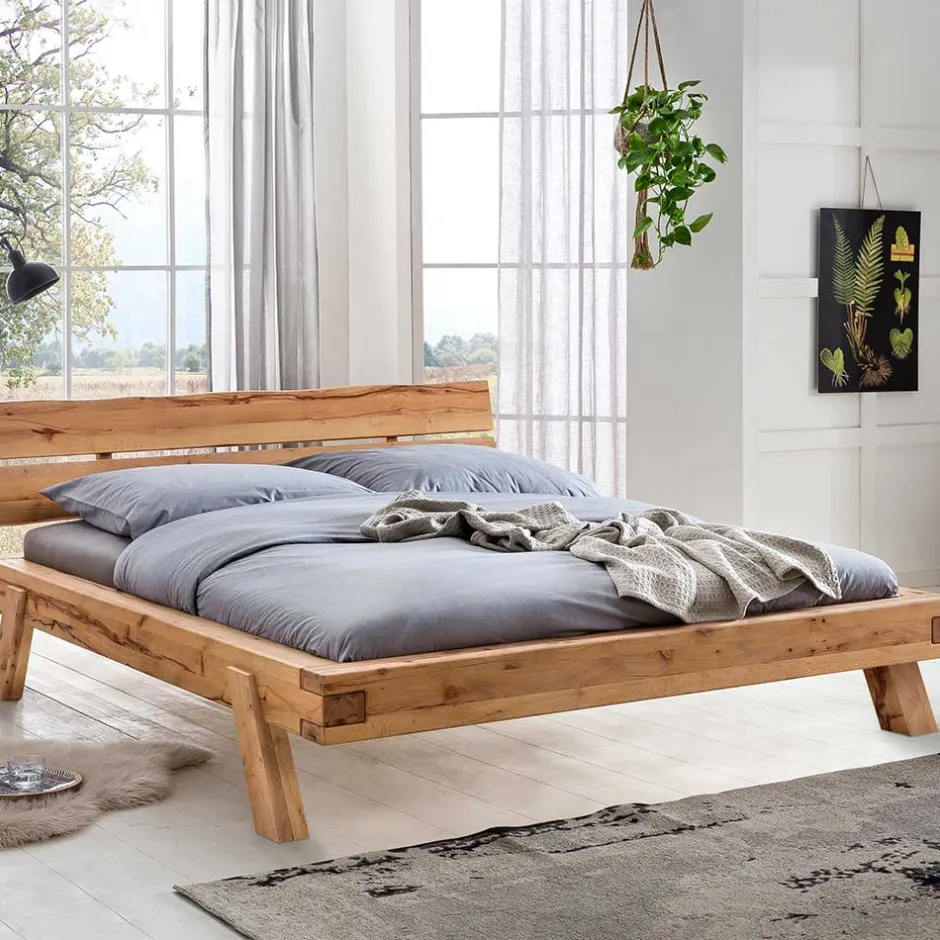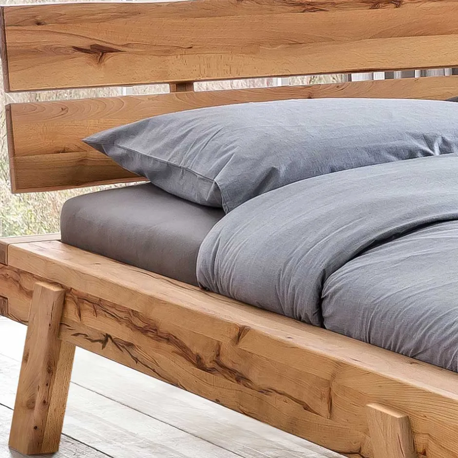 - Leicht schräg gestelltes Kopfteil aus zwei Brettern mit unikater Baumkante