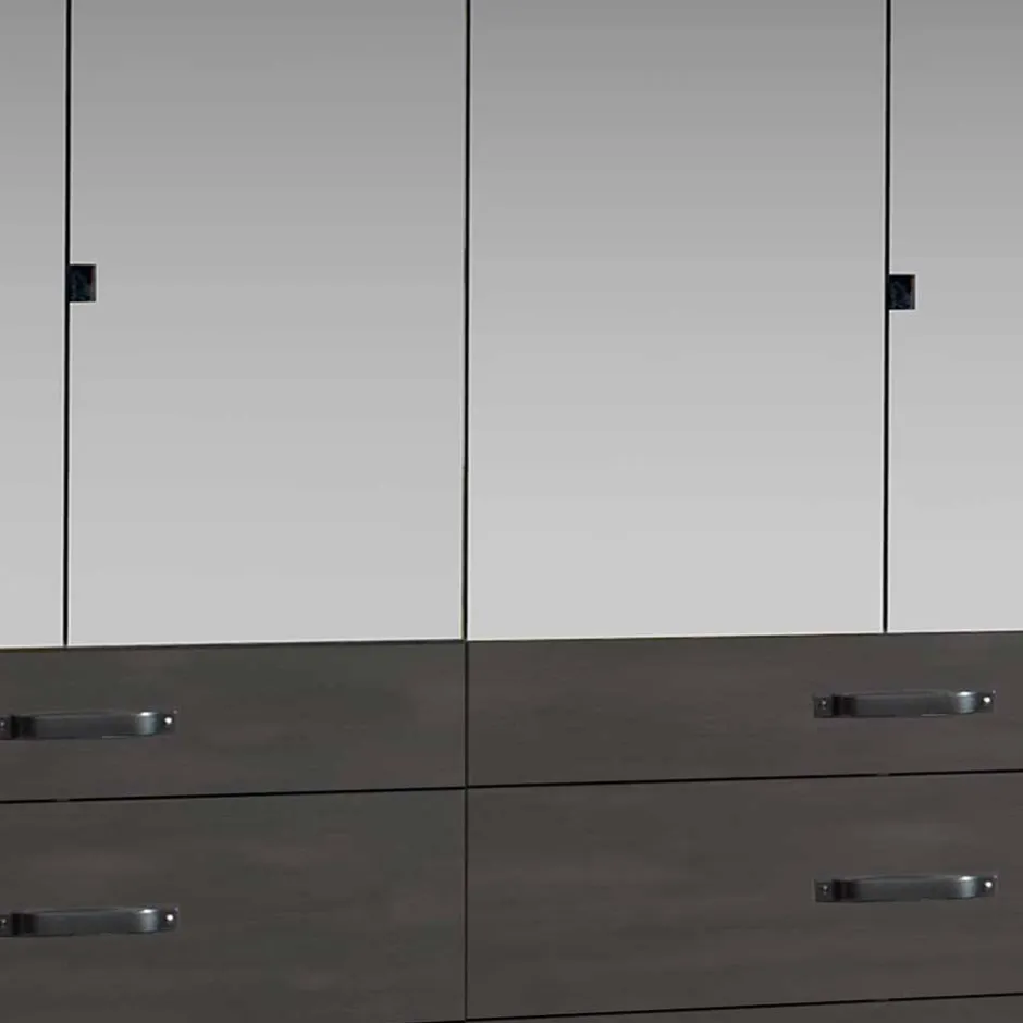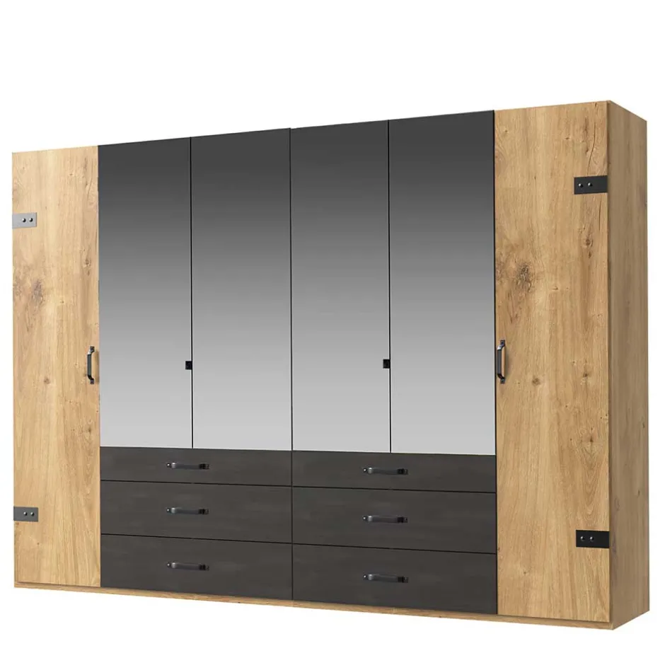 - Topaktueller Kleiderschrank in Plankeneiche Holzoptik und Schwarzgrau