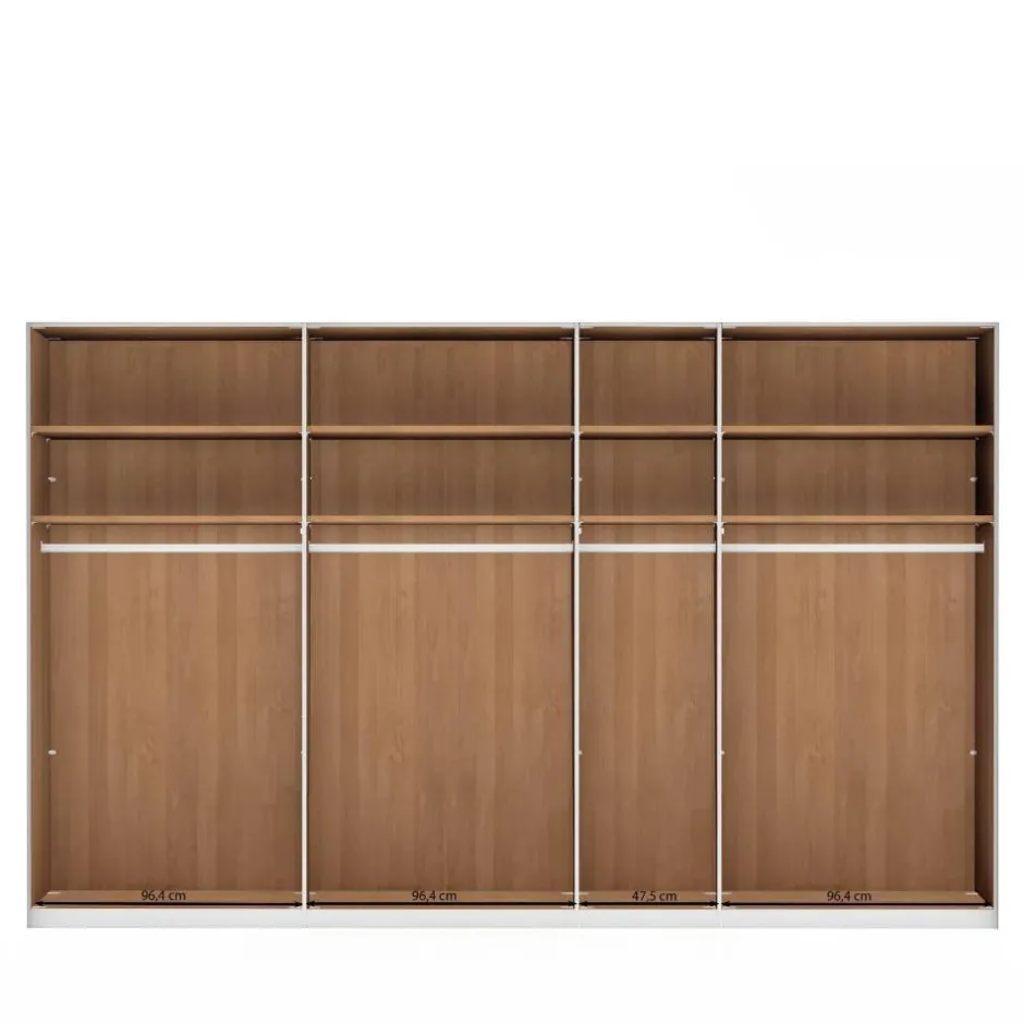 - Ein schmales und drei breite Fachelemente, Innenbreite 96,4/96,4/47,5/96,4 cm