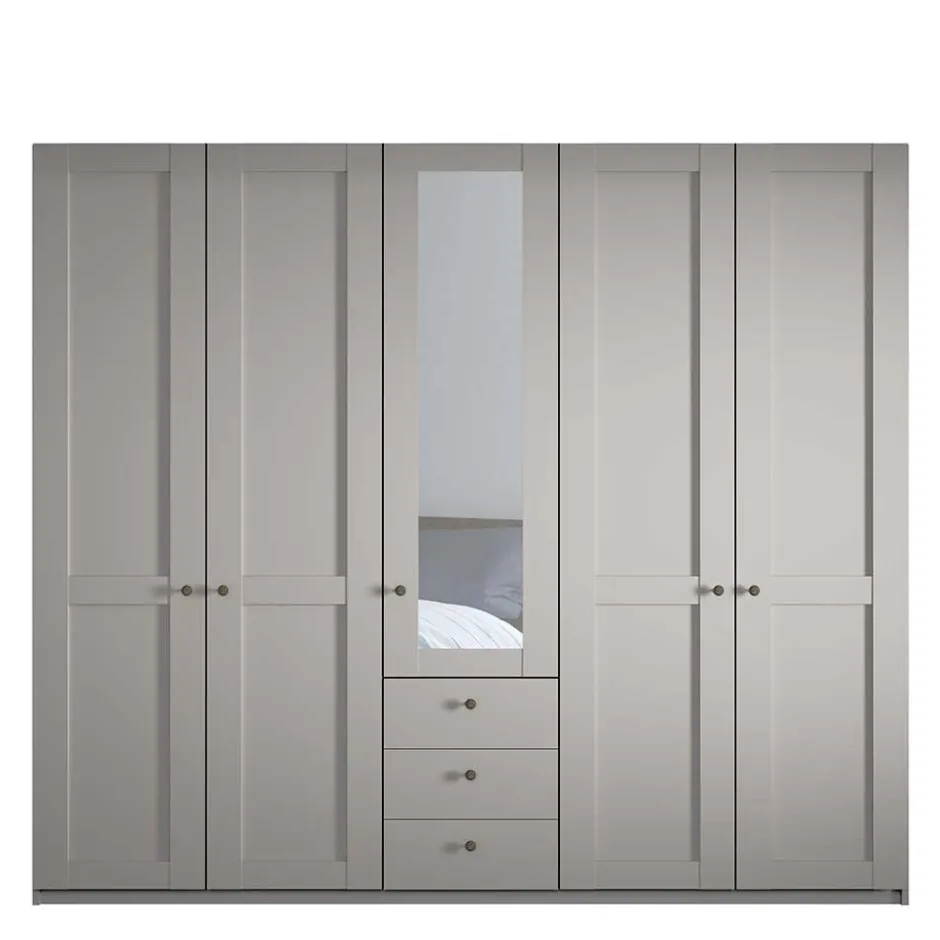 - Drei Fachelemente innen, Breite: 96,4/47,5/96,4 cm, jeweils mit zwei Einlegeböden und einer Kleiderstange ausgestattet