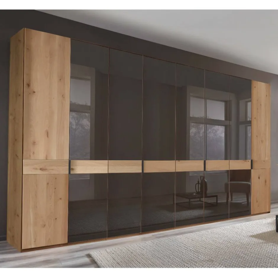 - Großzügiger Kleiderschrank in Dunkelbraun und Eiche Bianco teilmassiv mit Ästen