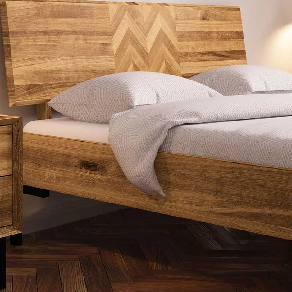 - Leicht schräg gestelltes Kopfteil mit aufwändigem Fischgrätmuster
