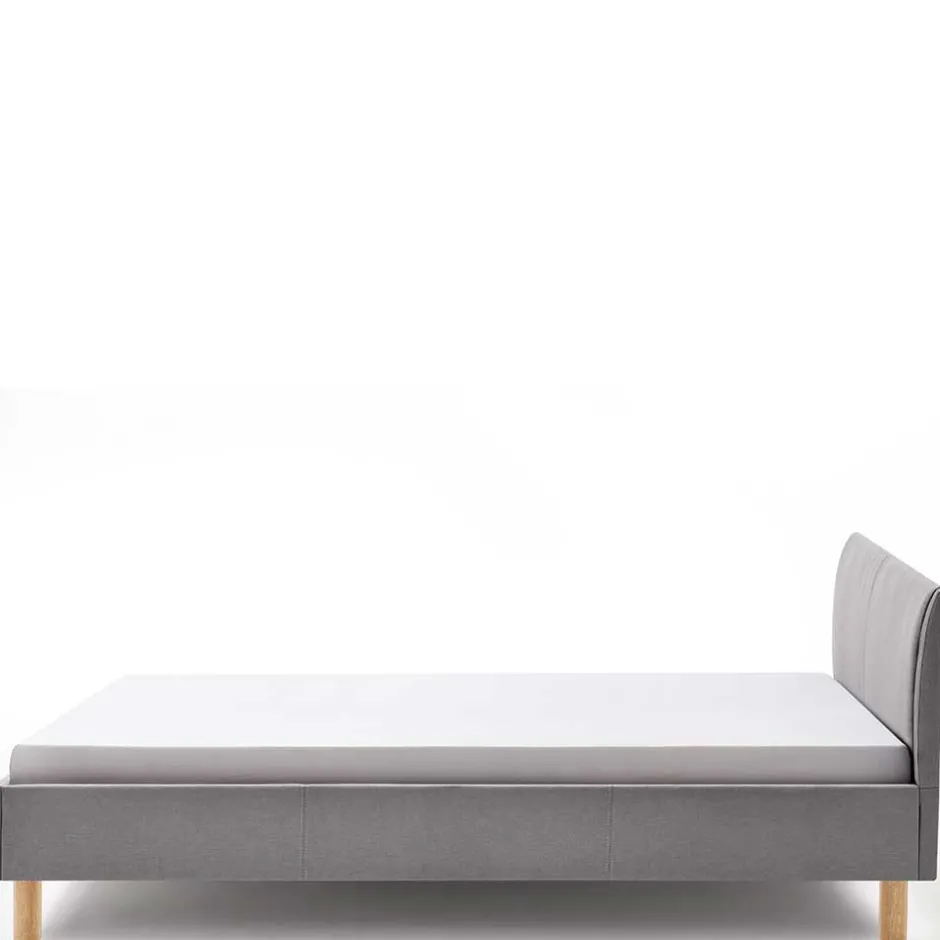 - Zeitloses Polsterbett in Hellgrau und Eichefarben