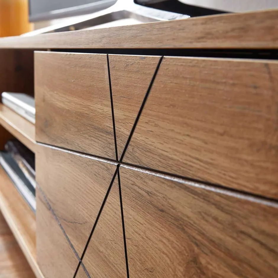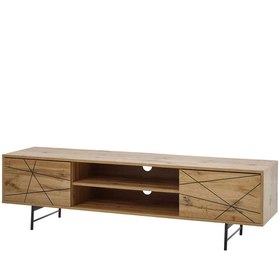 - Geräumiges TV Lowboard in Eichefarben und Schwarz