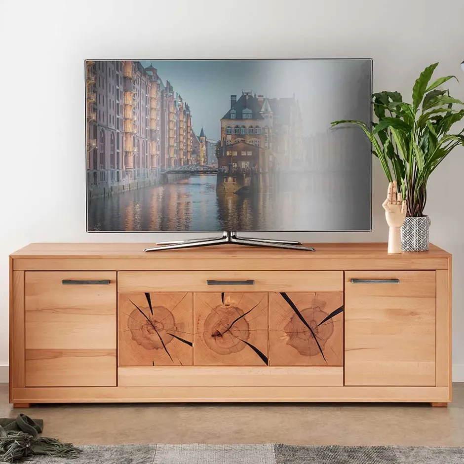 - Ausdrucksstarke Hirnholz-Elemente auf der Klappenfront