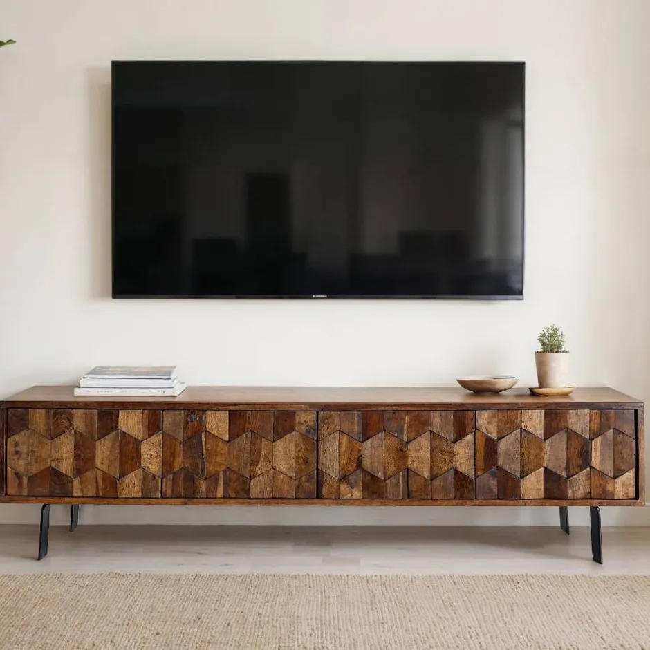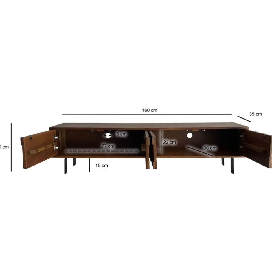 - Dekoratives TV Lowboard in Sheeshamfarben und Schwarz