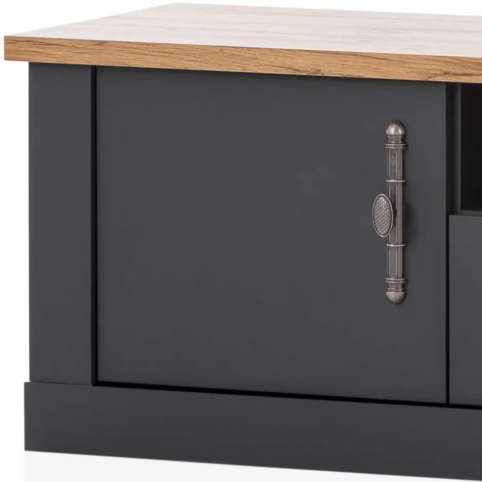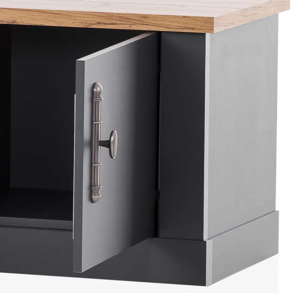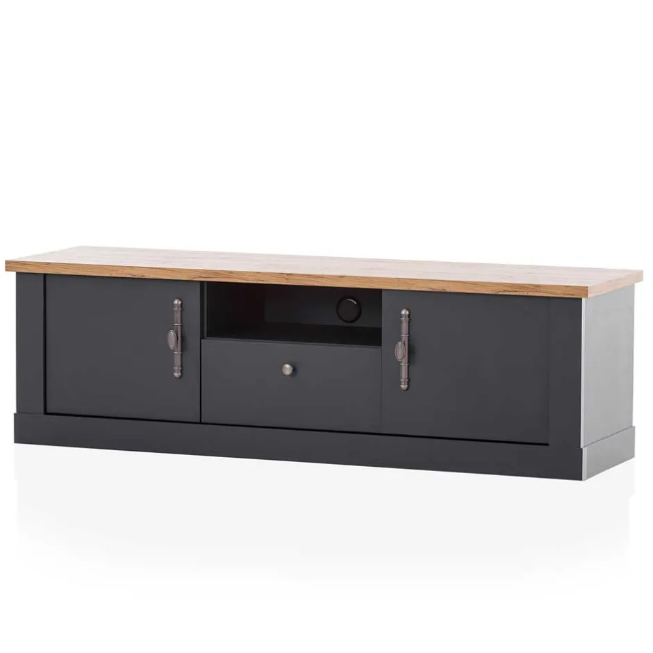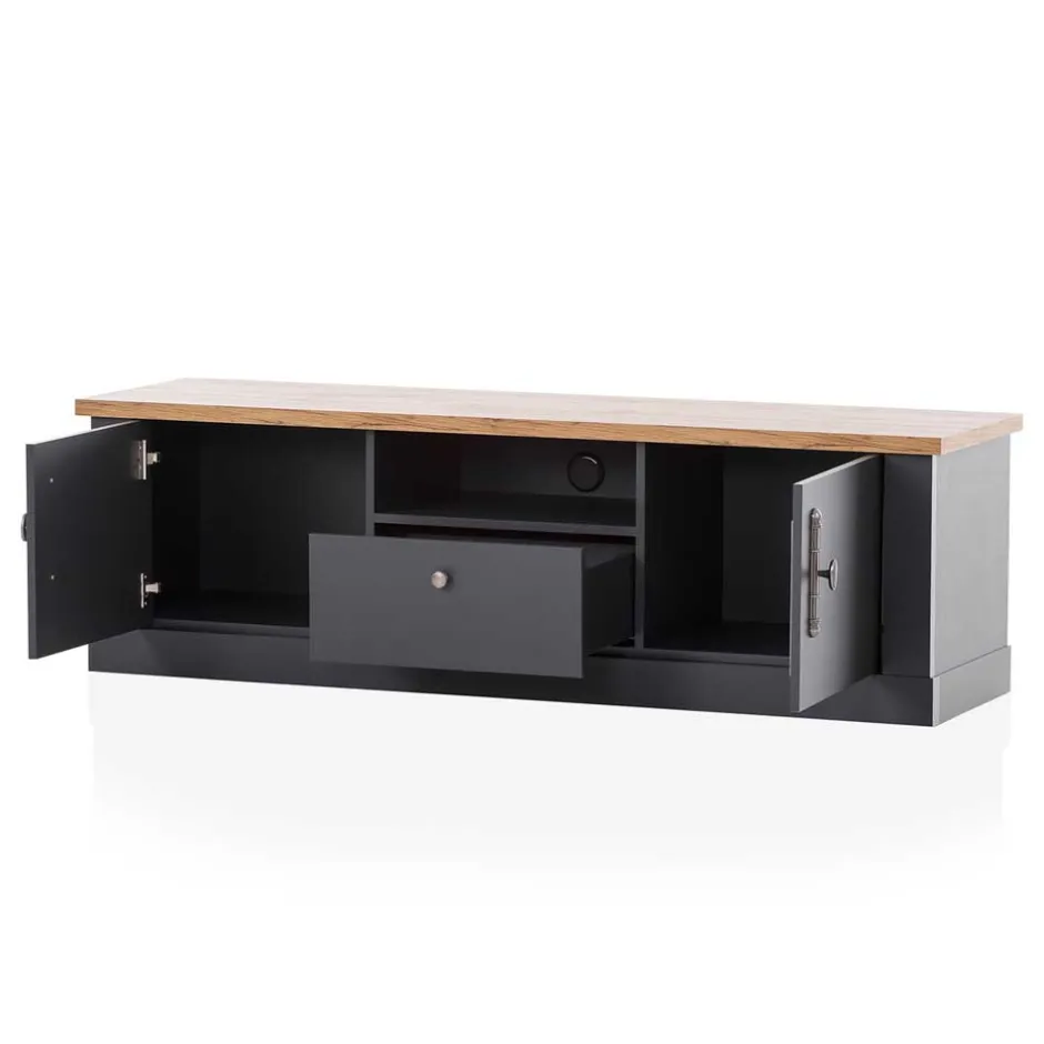 - Geräumiges TV Lowboard in Anthrazit und Wildeichefarben