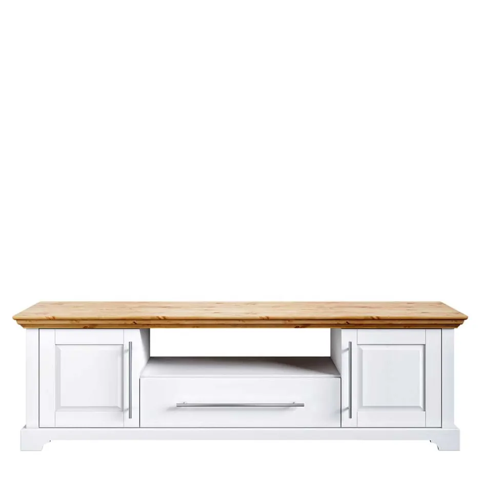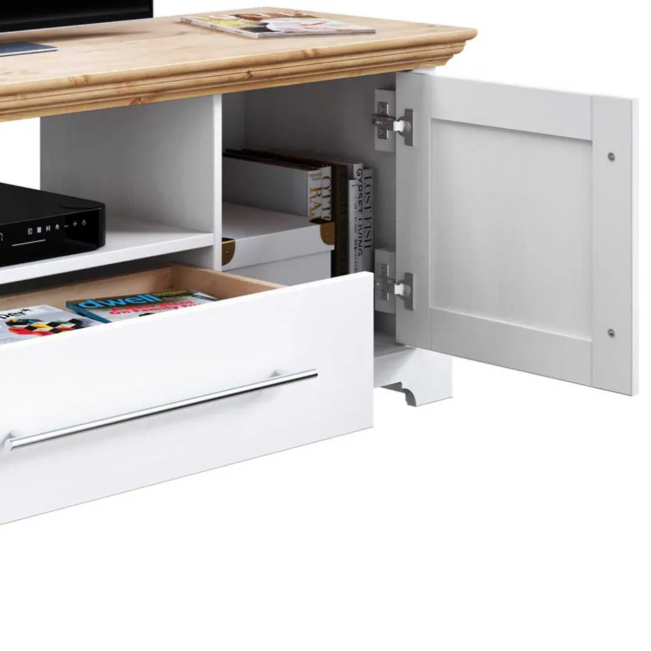 - Hübsches TV Lowboard in Weiß und Kieferfarben